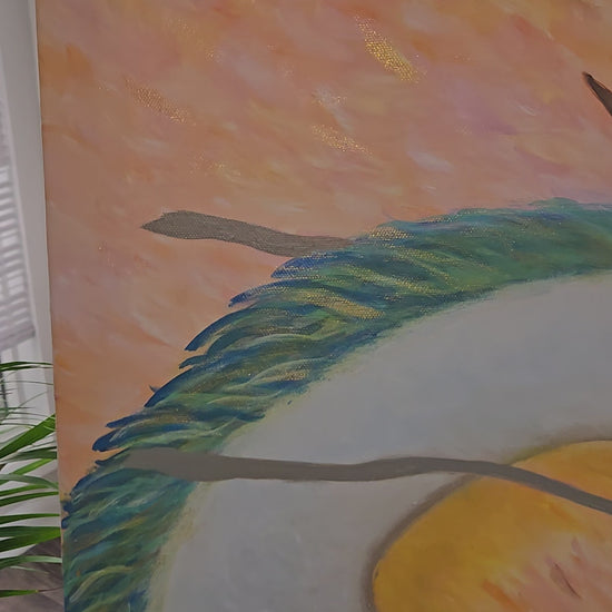 Eternal Light stands as the premier signature piece within my body of work—an intimate reflection of self, born from both vision and lived experience. The inspiration came from the ethereal dragon in the classic Studio Ghibli film Spirited Away, yet transformed through my own spiritual lens. For me, the dragon is more than myth; it is a guardian spirit, a presence that exists in unseen realms—what some may call the astral or spirit world.